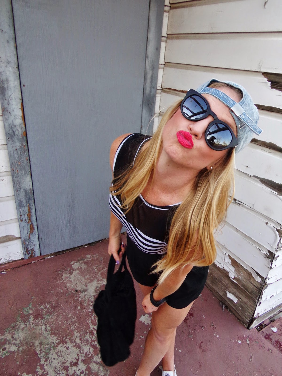 If you haven't noticed yet, I'm fully embracing the 90's comeback. Loving overalls and brights and florals and snapbacks. This top is actually a peplum I tucked in but I am so ready to buy some bodysuits! (I actually can't believe I'm saying that. I LOVED them as a kid. For some reason I thought they were so cool and made me feel grown up. haha weird.) Also, you can't tell very well in these photos, but this lip color is an awesome orangey color. Love it. Hope you all have the best week!